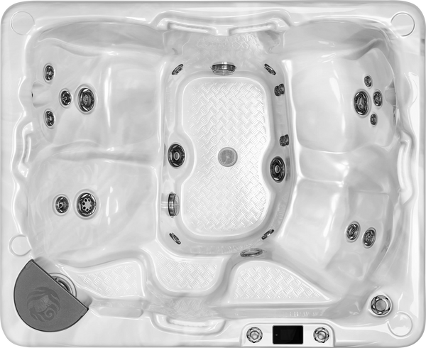 The energy efficient Hybrid4 Package features the LEEP Portable Package plus 100% Cavity Sealed 4 wall insulation, the energy saver management system and SafeAxiss Steps, Hush Pump System, Britewerx Flexjets, a tub that is ClearTech UVC Water Care Ready, Reflex Foot Massage as well as a Premium Acrylic Upgrade.